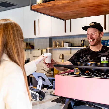 客人可以在Baked Republic和咖啡厅度过一段愉快的时光. 小的酒吧也可供客人使用.